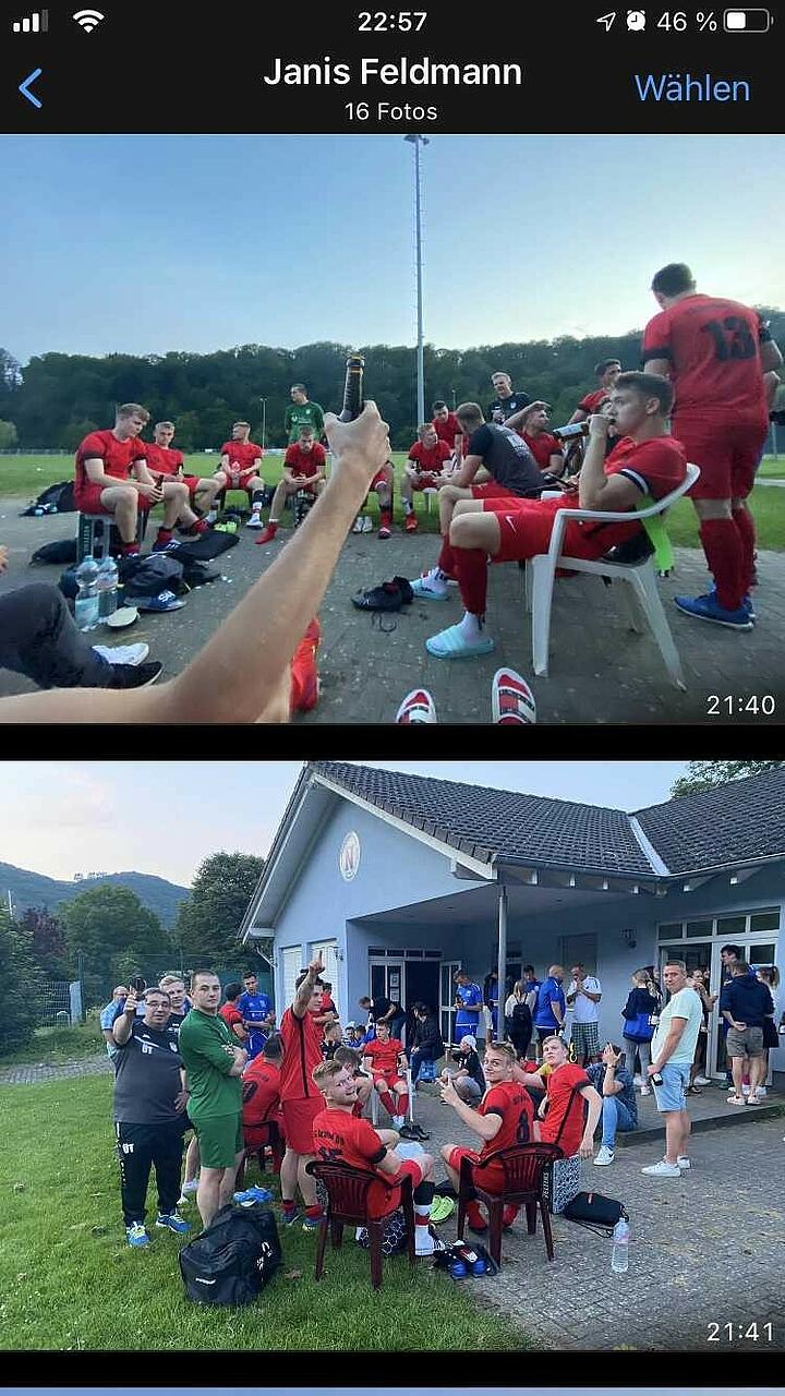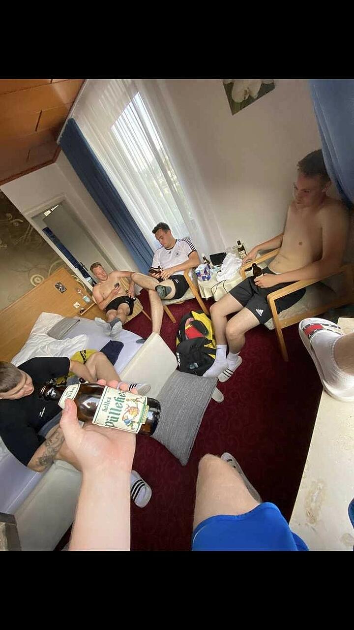 Müdigkeit? So ein Quatsch werden die meisten sagen! Ich selber habe mich mit 3-4 ruhigen Vertretern noch auf die Hotel- Veranda zum schmalen Weizenbier verabredet, während die DSG U21- Garde um Partyantreiber Janis Feldmann & Niklas Böttcher auf kürzestem Wege in Richtung SGW- Vereinskneipe weiterzogen, wo sich bereits zumindest 3 verbliebene Ultras an den Wodka Säulen aus dem Megapark und aus der letzten Röhre grölend sehnsüchtig auf Unterstützung warteten. Einzig Youngster Marius Unruh besann sich weniger auf’s Trinken, sondern mehr auf den Ausbau seiner Instagram & Snapchat Kommune, wobei das Ziel von 1.000 Followern zumindest Stand Samstagmittag noch nicht ganz erreicht wurde. Ein Selfie mit diesem Top- Influencer wurde mir bislang von ihm leider bislang verwehrt ☹.
