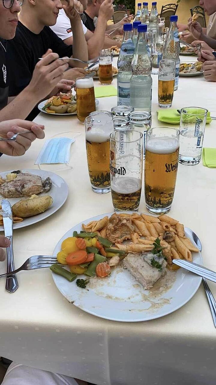 Neben anstrengenden Trainingseinheiten auf der Kuhwiese, ähm Sportplatz standen allerdings auch eine Wandertour incl. leckerem Eis, gemeinsame Abendessen, ein Freundschaftsspiel gegen den ortsansässigen A-Ligisten SG Niederbreitbach und die anschließende Spielerparty auf dem Programm.