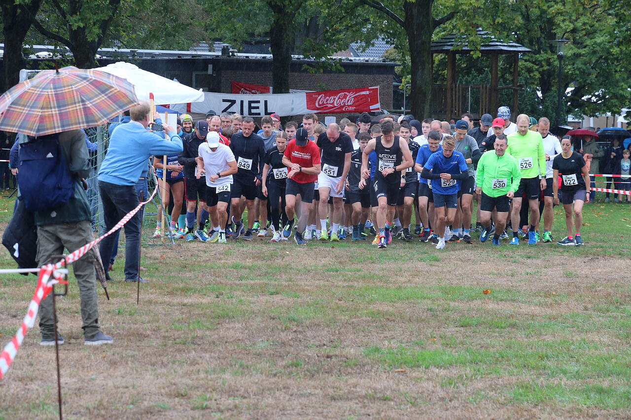 Wie immer am 3. Sonntag im September hieß es wieder : Volkslauf in Druffel Zum 20. mal gingen in Druffel Läuferinnen und Läufer aus dem Ort und der näheren Umgebung an den Start. Das Wetter meinte es in diesem Jahr nicht so gut mit uns . Trotz teilweise ergiebigen Regenfällen gingen noch 234 Läufer an den Start. Um Punkt 11 Uhr gingen 33 Bambinis auf die original Druffeler Schützenplatzrunde . Im Ziel wurden alle mit einem Eisgutschein vom Eiswagen belohnt . 15 Minuten später hieß es dann für 44 Schüler , Start frei !! Bei den Jungs kamen am Ende 1. Simon Frerich , 2. Fynn Laukötter , 3. Lenn Meier aufs Treppchen. Die ersten 3 Mädels hießen 1. Elisa Millentrup , 2. Felicitas Winter , 3. Sofia Bene Lam . Danach ging es auf die längeren Strecken. Beim 10er gingen um 11:30 Uhr 70 Läufer an den Start. Die 5km Strecke startete 10 Minuten später mit 80 Startern. Zusammen mit den 5 er gingen auch noch 7 Walker mit auf die Strecke. Alle Zeiten und Platzierungen unter www.ttjung.de Bei der Teamwertung belegte den 1.Platz die LG Burg Wiedenbrück ( 24 ) 2.Platz Druffeler SG B-Jugend ( 20 )und auf den 3.Platz kam die D Jugend der Druffeler SG ( 11 ). Den Wanderpokal für den schnellsten 10 km Läufer vom Sportverein sicherte sich Thomas Ridder. Besonders gut fand ich das wieder viele Druffeler und Sportler der DSG am Start waren--- weiter so Im nächsten Jahr heist es dann am 17.9.2023 : 21 . Druffeler Volkslauf !!!