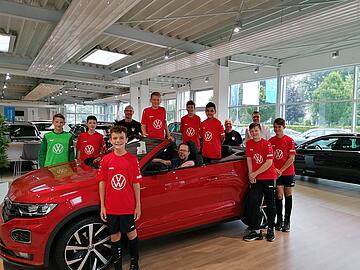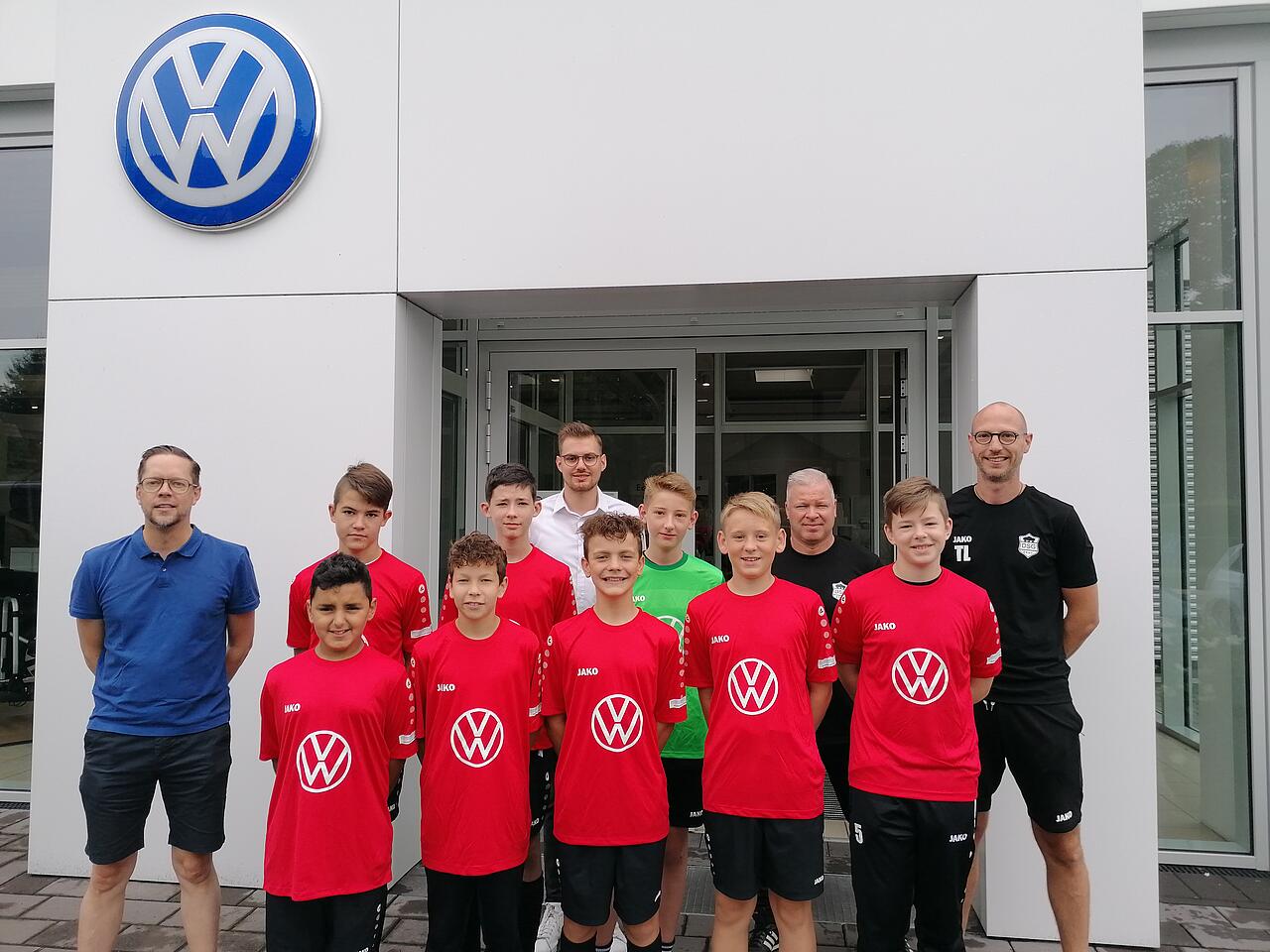 In der nun beginnenden Saison aber läuft auch die neu formierte C-Jugend-Mannschaft der Druffeler SG mit dem Logo des Volkswagenkonzerns auf ihren Trikots auf. Dies verdanken die jungen Kicker der großzügigen Unterstützung des Rietberger VW-Händlers Autohaus am Südtor, der dem Verein zum Start der neuen Saison einen kompletten Trikotsatz überreichte.