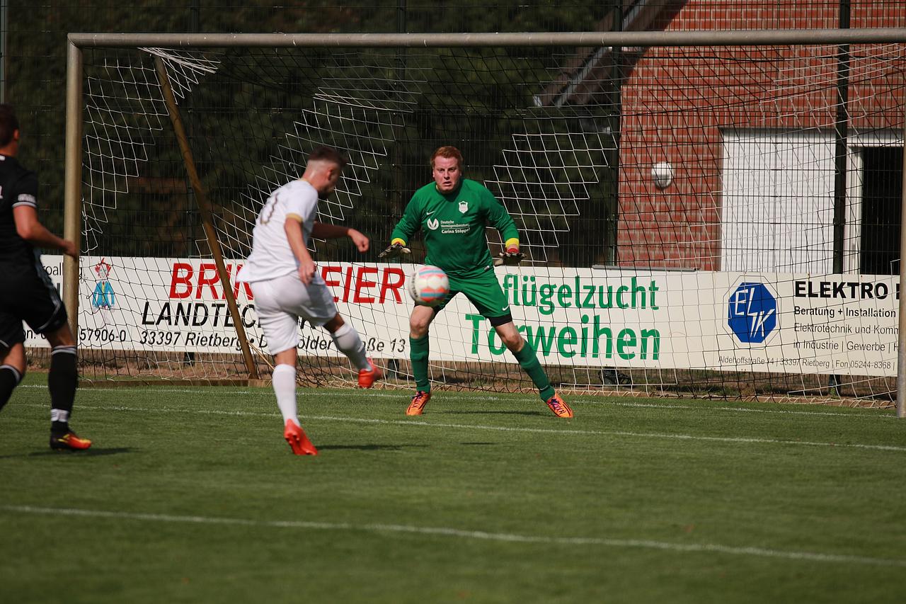 Druffel drückte im Anschluss auf den Ausgleich, kam aber bis auf zweier Möglichkeiten nach Standardsituationen eher nicht gefährlich vor das Gäste- Tor. Rheda dagegen versuchte es mit Fernschüssen, die von Aushilfs- Keeper Marius Hesse im DSG Tor gut pariert wurden, so dass man mit dem knappen 0:1 Rückstand aus DSG Sicht in die Pause ging.
