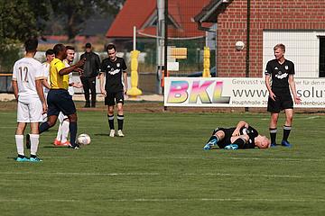 Kurz vor Schluss dann noch eine unschöne Szene im DSG Strafraum. Hinter dem Rücken des Schiedsrichters wurde von einem Gäste Akteur der Ellbogen gegen Mario Aschhoff ausgefahren, Aschhoff schubste daraufhin seinen Gegenspieler von sich weg, welcher mehr als theatralisch zu Boden ging.