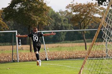 Neuzugang Marian Christea schnappte sich die Kugel 17 Meter vor dem Tor zum Freistoß, visierte den linken Pfosten an und knappte sie zum 1:1 Ausgleich ins Eck. Und jetzt war Dampf in der Partie. Nur 4 Minuten später Flanke Jens Himmeldirk aus dem rechten Halbfeld, erneut Christea in der Mitte, der per Kopfball den 2:1 Führungstreffer markierte, seinen Schuh in die Luft feuerte und sich mit der Truppe feiern durfte.