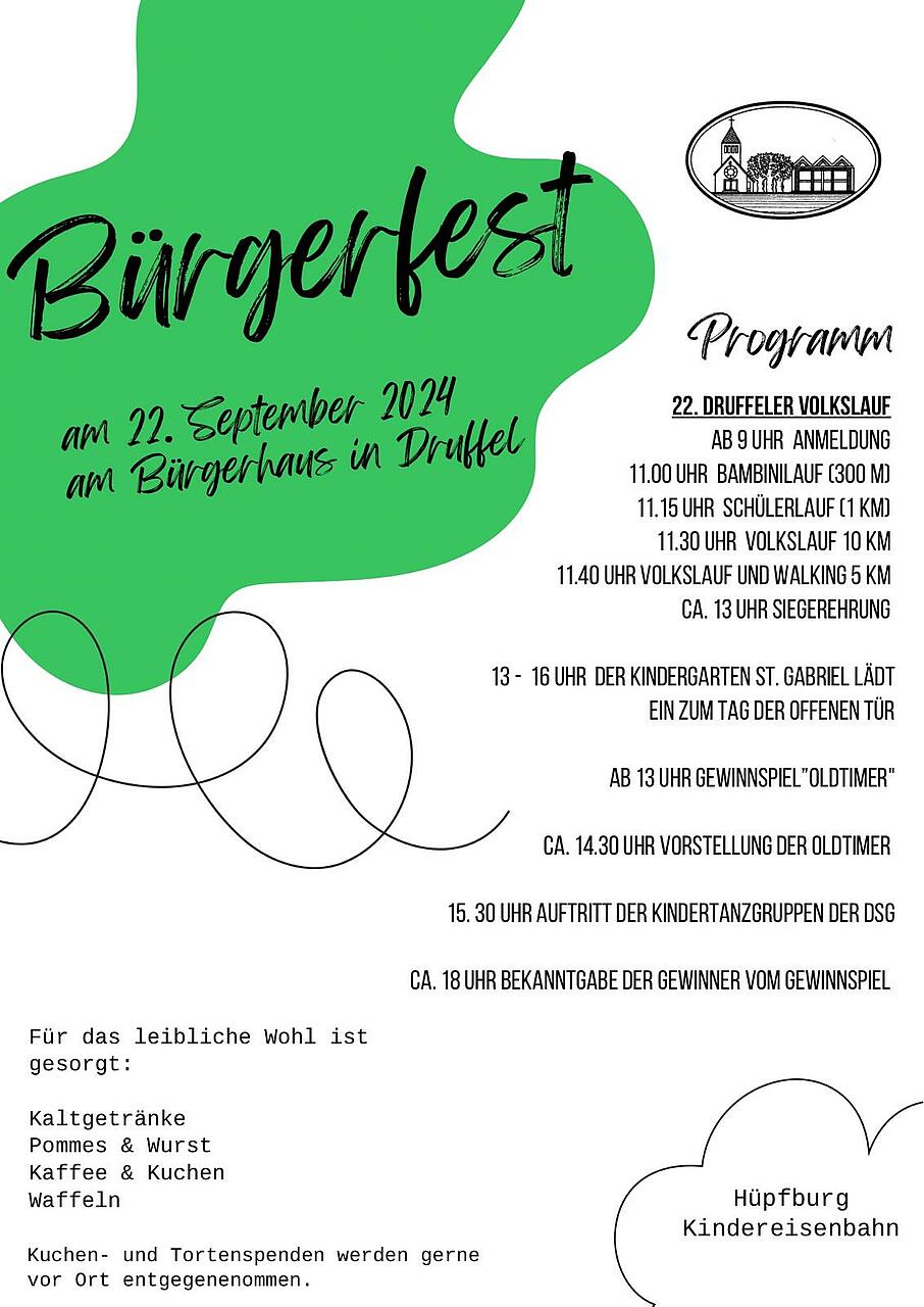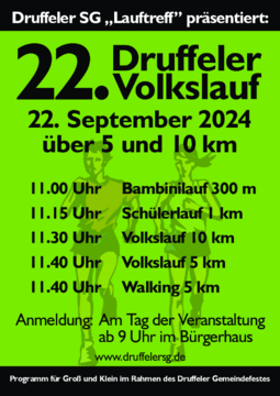 Am Sonntag, dem 22. September findet in Druffel das Bürgerfest mit Volkslauf statt.