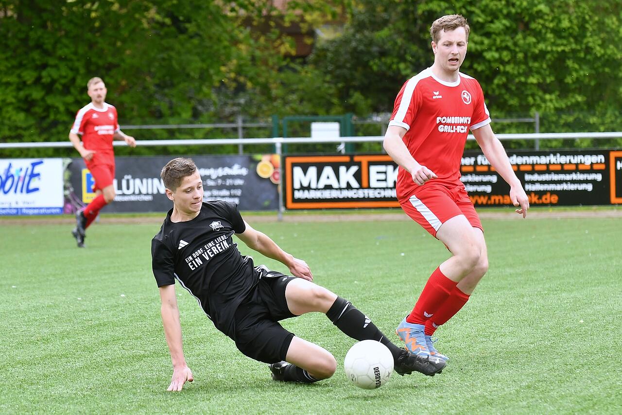 In der Folgezeit plätscherte die Partie vor sich dahin. Beste Chance auf Seite der Druffeler hatte Jonas Knaup, der aus halblinker Position aus spitzen Winkel zum Abschluss kam, aber vom herausstürmenden Keeper mit gestreckten Bein irritiert wurde und so deutlich verzog. Auch hier hätte man auf Elfmeter entscheiden können, doch ein Pfiff blieb erneut aus.