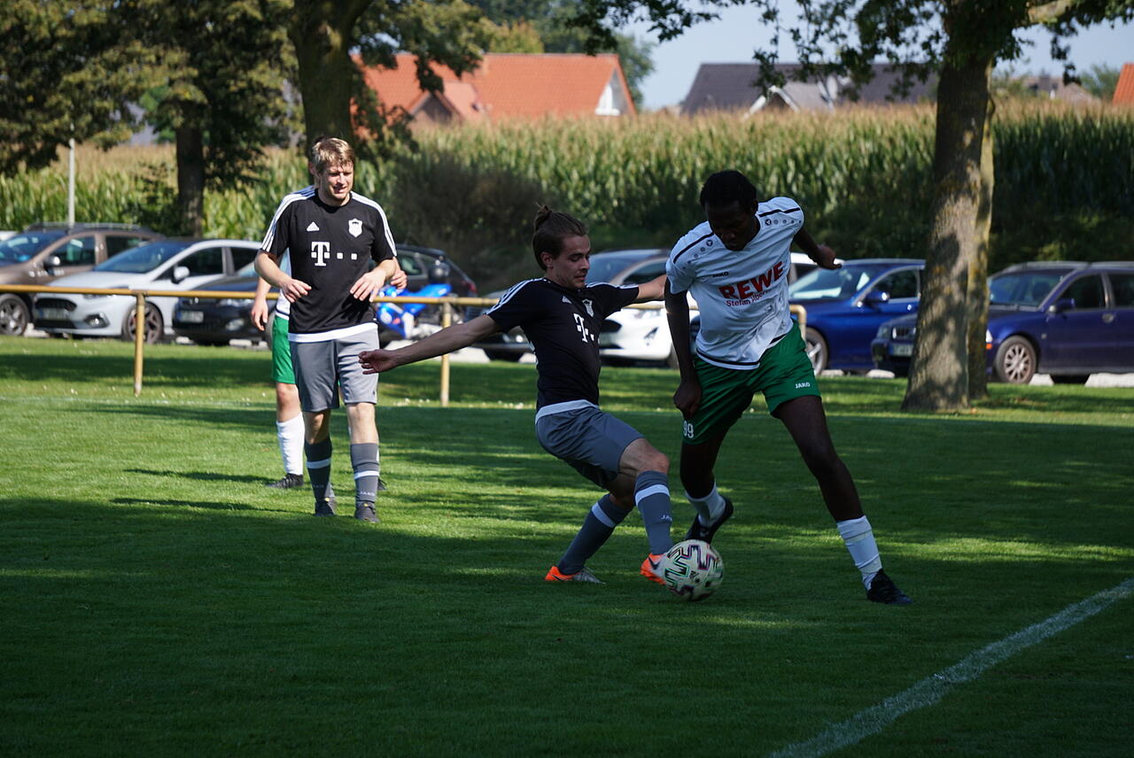 Gegen die dicht gestaffelte Abwehrreihe der grün weißen, taten sich die Druffeler im ersten Durchgang extrem schwer und kamen lediglich zu einer Halbchance in der 10. Minute durch Timo Sagemüller, der perfekt durch seinen Bruder Kai bedient wurde, jedoch einen Schritt zu spät war und der Gästekeeper den Ball abfangen konnte.
